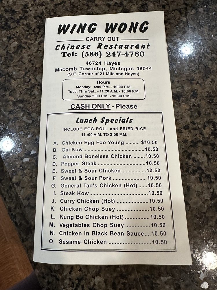 Welcome to Wing Wong Carryout Restaurant, where authentic Chinese flavors meet convenience. Located at 46724 Hayes Rd, Macomb, MI, this unassuming eatery has garnered a loyal following thanks to its commitment to quality and affordability.